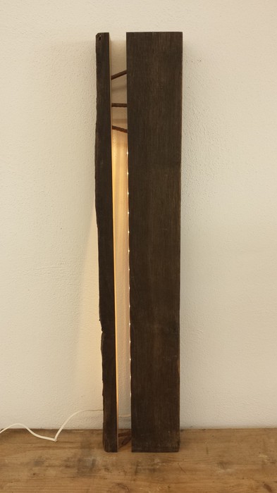LED Lichtobjekt. Multiplex mit altem Baustahl veredelt